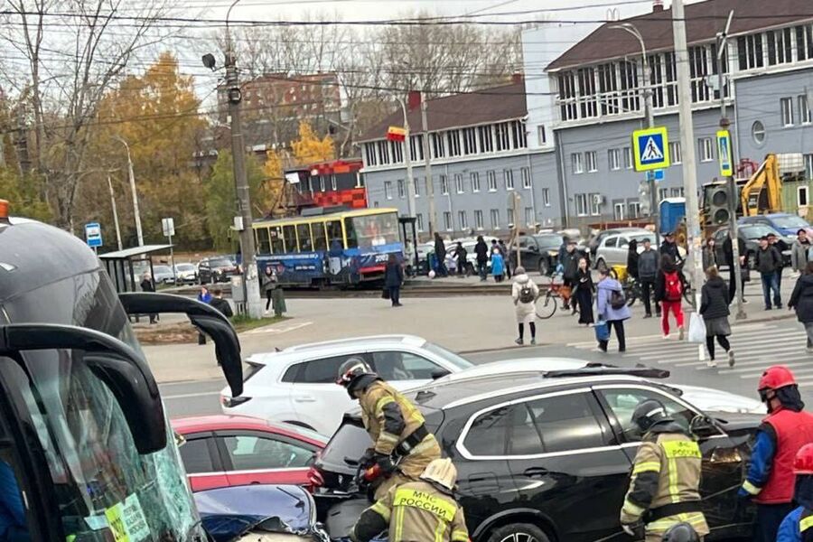 «Все произошло на пересечении Удмуртской и улицы Кирова: столкнулись рейсовый автобус «Казань-Пермь» и три легковых автомобиля. Предварительно, одна из машин влетела в пешеходов», — говорится в сообщении.