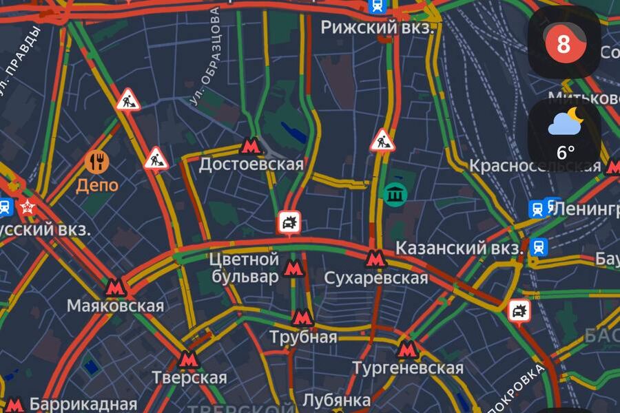 Судя по онлайн-картам, самые серьезные пробки наблюдаются в центре города.
