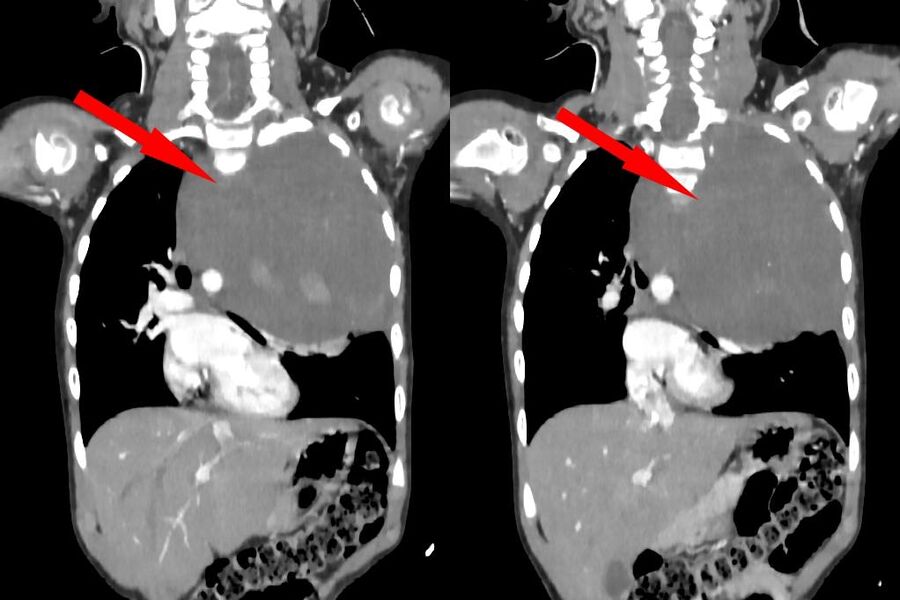 «Учитывая гигантский размер опухоли и ее расположение вблизи множества жизненно важных структур, мы использовали расширенный доступ по типу «раковины моллюска». Он предполагает рассечение не только межреберного промежутка, но и самой грудины, что позволяет «раскрыть» грудную клетку, как раковину», — рассказал заведующий отделением реконструктивной и восстановительной хирургии грудной полости РДКБ, к.м.н. Евгений Андреев об операции.