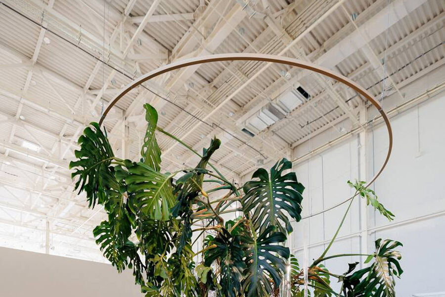 Объект превращает идею умной экосистемы в зримую форму: легкие вертикальные колонны создают эффект невидимой опоры, по прозрачным каналам бегут пузырьки-данные. В окружающую среду встроена умная колонка SberBoom Micro, с которой можно побеседовать о философии, природе и будущем. И даже дизайн драпировок сгенерирован с помощью нейросети Kandinsky.