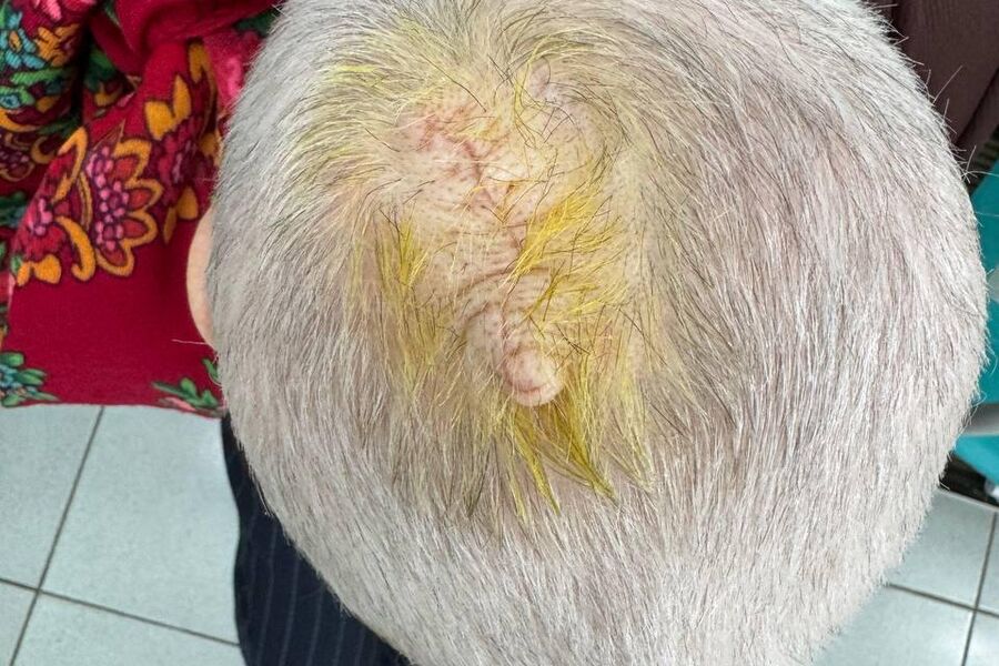 «Атерома выросла у женщины прямо на голове, чем, конечно, доставляла немалые страдания. К счастью, наши врачи смогли объяснить пациентке возможные риски и она согласилась на операцию. Так, с первого раза мы успешно удалили новообразование, без натяжения тканей, что обеспечило оптимальный косметический результат и быстрое восстановление», — рассказала хирург больницы Вера Заречина.