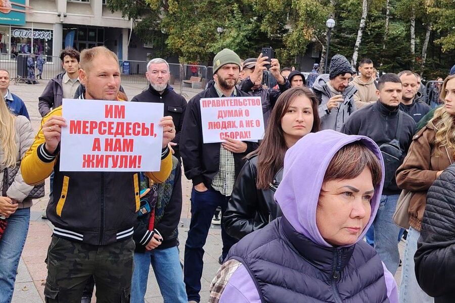 Во Владивостоке около 500 человек вышли на митинг против повышения утильсбора. Об этом сообщает Telegram-канал Baza.