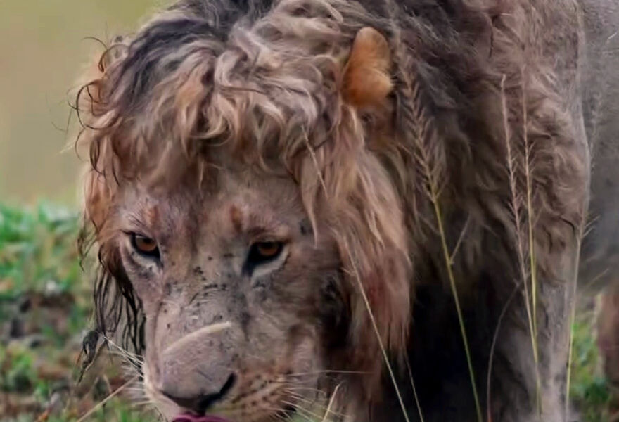 На фотографии запечатлен лев по кличке Нзури. Сейчас он живет отдельно, вместе с другими молодыми самцами, отделившимися от основного прайда. Эксперты предполагают, что кудрявая грива могла появиться из-за сочетания генетических особенностей, влажного климата и естественной сушки после дождя.