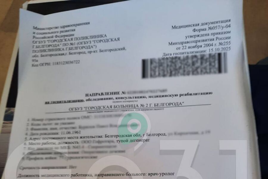 В Белгороде пациента назвали тупым дегенератом в медицинском документе