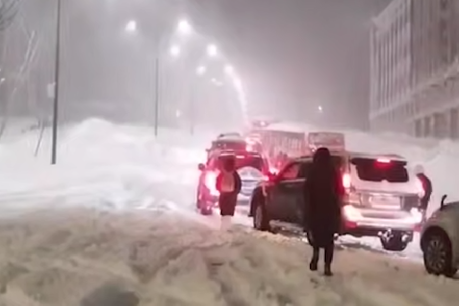 «В городе застревают автобусы, люди вынуждены добираться до своих рабочих мест пешком... Большие пробки, техника не успевает чистить выпадающий снег. Некоторые автобусы просто застряли и не смогли ехать», — говорится в сообщении.