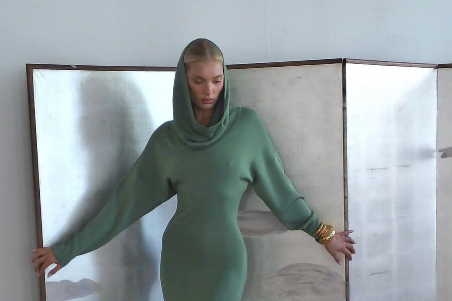 Эльза Хоск снялась в облегающем зеленом платье без нижнего белья и с капюшоном. Образ дополнили золотые браслеты и туфли с острым мысом. Однако пользователи соцсетей не оценили платье.