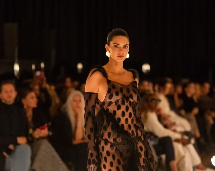 Модель Кендалл Дженнер появилась на показе в прозрачном платье