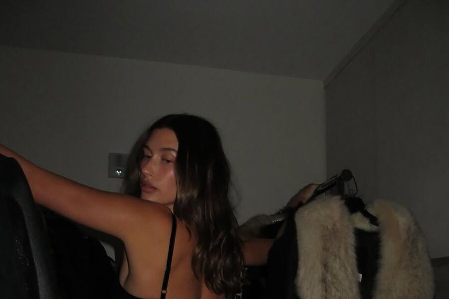 31-летняя Хейли Бибер предстала перед камерой в черном комплекте белья. Модель была запечатлена с уложенными распущенными волосами и макияжем. Манекенщица стояла в гардеробной.