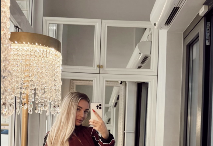 42-летняя Анна Седокова показала фигуру в бордовом спортивном костюме с полосками, приспустив штаны и продемонстрировав нижнее белье. Певица стояла перед зеркалом в кедах на платформе. Поп-исполнительница была запечатлена с уложенными распущенными волосами и без косметики.