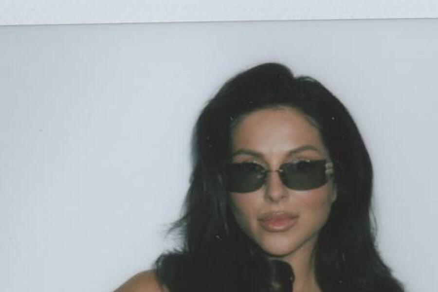 Нюша показала фигуру в розовом корсете с глубоким декольте и прямых брюках. Образ дополнили солнцезащитные очки. Волосы певице уложили мягкими прядями и сделали вечерний макияж.