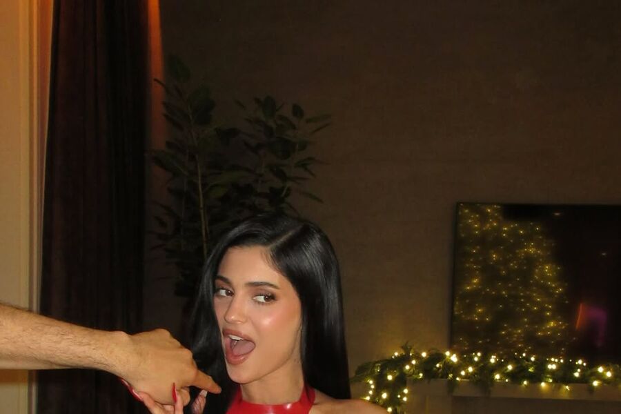 Кайли Дженнер позировала в красном латексном платье с открытыми руками. Волосы ей выпрямили и сделали вечерний макияж. В кадре также была вытянута мужская рука, а ее обладателя скрыли за кадром.