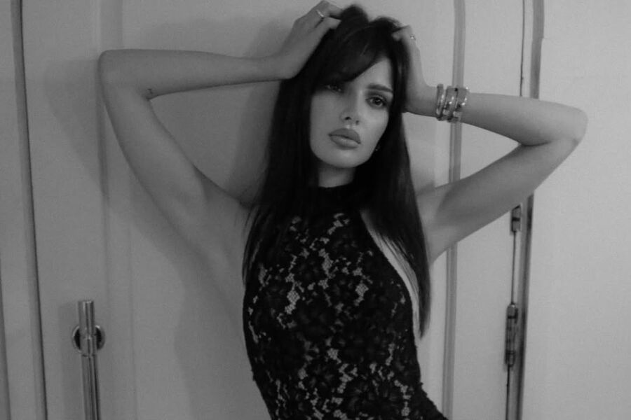 26-летняя Дина Саева предстала перед камерой с новым темным цветом волос и длинной челкой. Блогерша позировала в кадре с макияжем с тушью, тенями для ресниц и помадой. Она была запечатлена в черном макси-платье с полупрозрачным кружевным верхом. Знаменитость также надела часы и кольца.