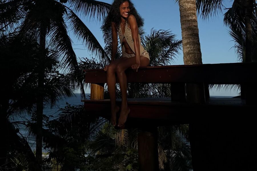 29-летняя Нара Баптиста позировала перед камерой в бежевом комплекте, который состоял из топа с глубоким декольте и коротких шортов. Модель предстала в кадре с распущенными волосами и без косметики. Манекенщица сидела на фоне пальм и океана.