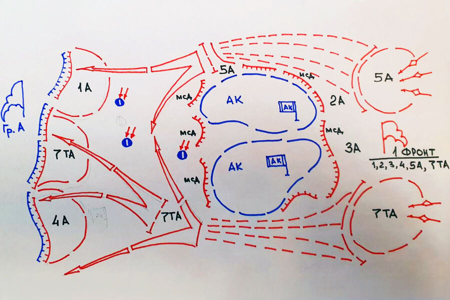 В последующем формируются внутренний и внешний фронты окружения. По группировке противника, оказавшейся в котле, наносятся рассекающие удары, происходит дробление окруженных войск противника и уничтожение частей и соединений неприятеля по частям.