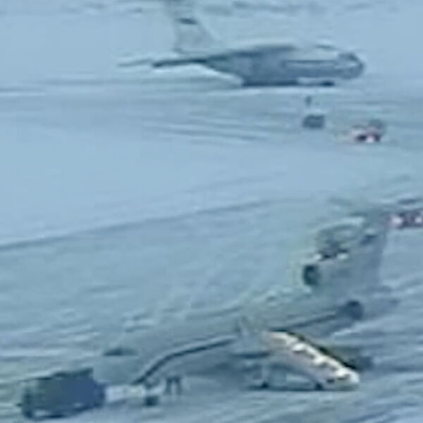На кадрах видно, что украинских военных, которые подлежали обмену, привезли автоколонной из шести машин к борту Ил-76. Из автотранспорта они поднялись на борт.