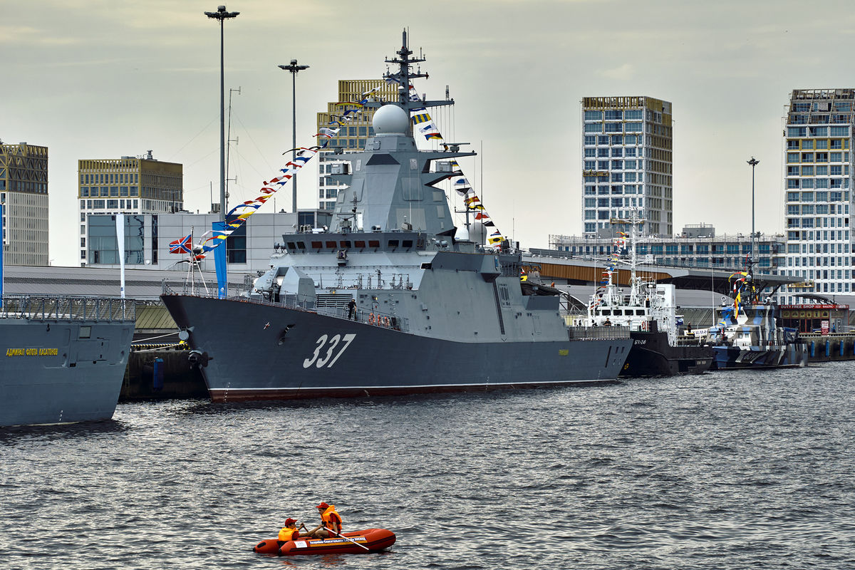 Президент России Владимир Путин в ходе церемонии подъема флага на поступающих в состав ВМФ РФ кораблях заявил, что в разных стадиях готовности находятся пять фрегатов, восемь корветов, 13 малых ракетных кораблей и более 50 других кораблей.
