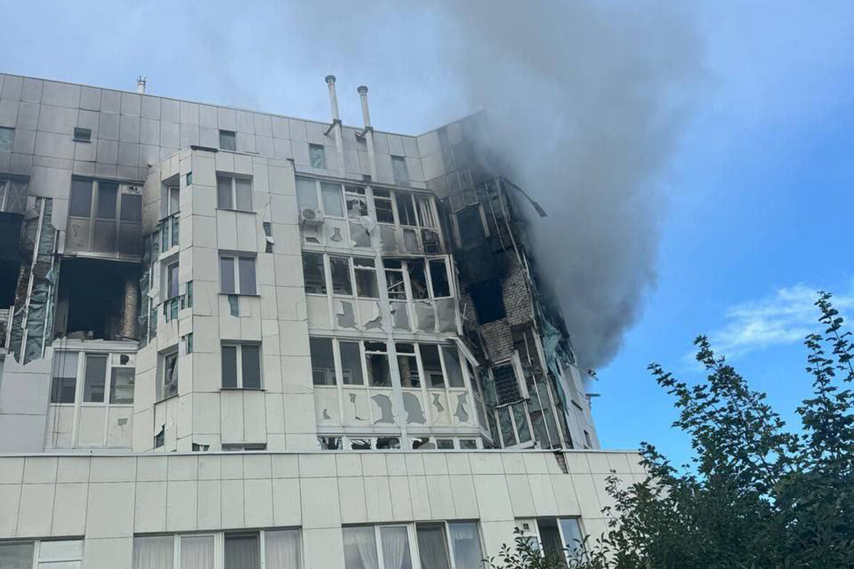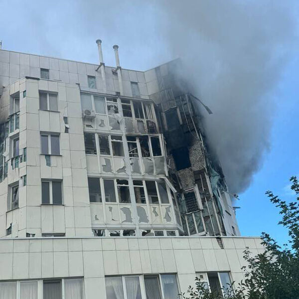 В результате произошедшей атаки начался пожар в нескольких квартирах. Сотрудники МЧС занимаются ликвидацией очагов возгорания.