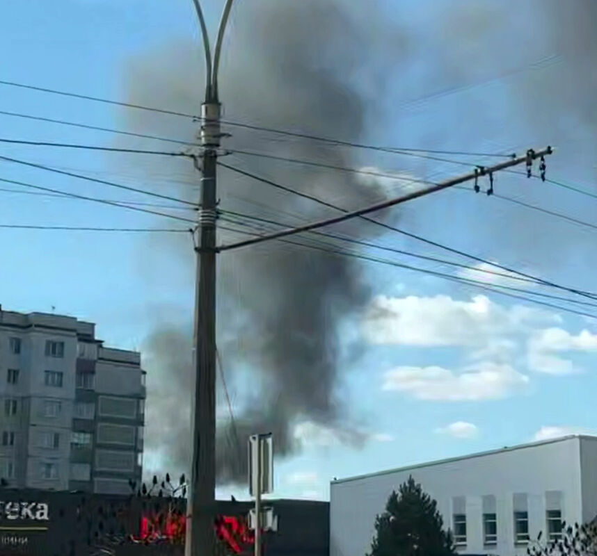 Публикация дополнена видео с места происшествия, заснятым очевидцами. На кадрах видно, как в небо поднимаются клубы черного дыма.