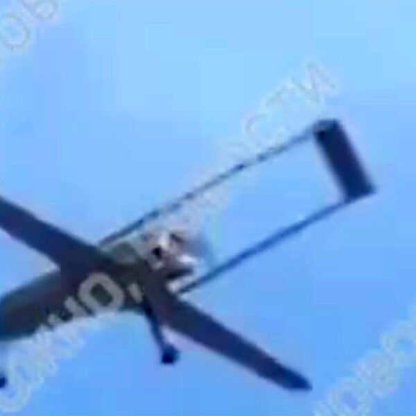 На ролике, снятом местными жителями, можно увидеть в небе белый беспилотник самолетного типа и услышать его жужжание. Определить, насколько низко он летит, невозможно.