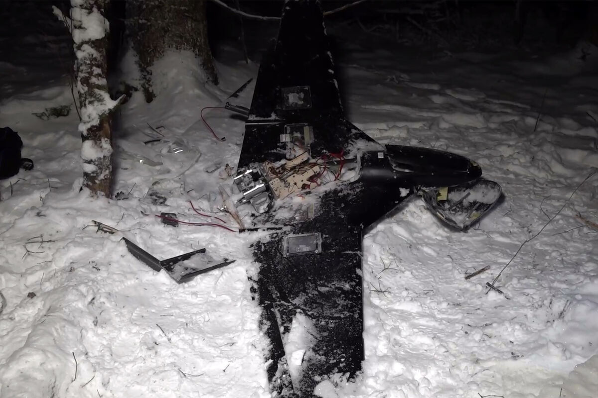 Минобороны опубликовало видеозапись с обломками одного из дронов, атаковавших резиденцию президента РФ Владимира Путина в Новгородской области.