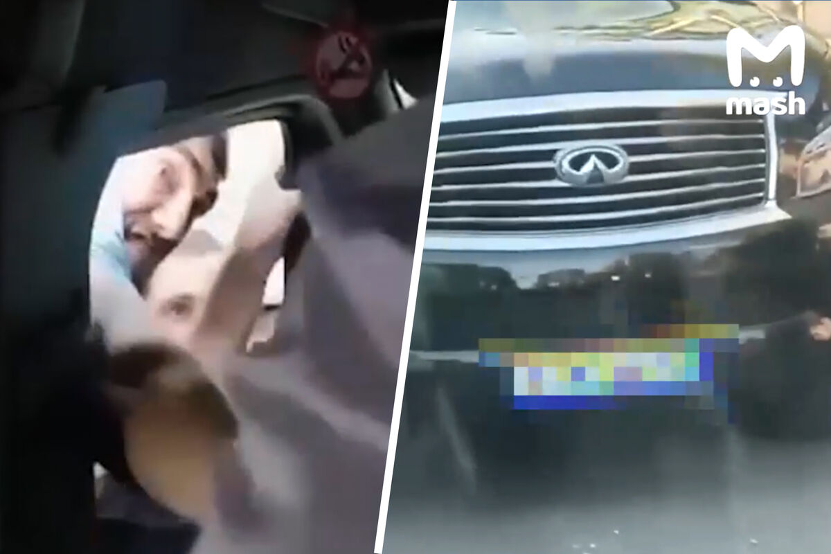 По данным Mash, мужчины на автомобиле Infiniti решили, что свадебный микроавтобус их подрезал.
