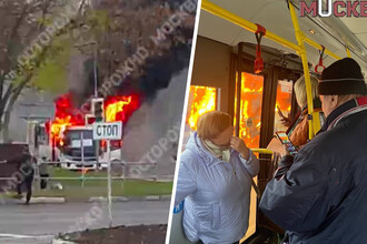 Рейсовый автобус вспыхнул на Борисовском шоссе в Подмосковье и попал на видео