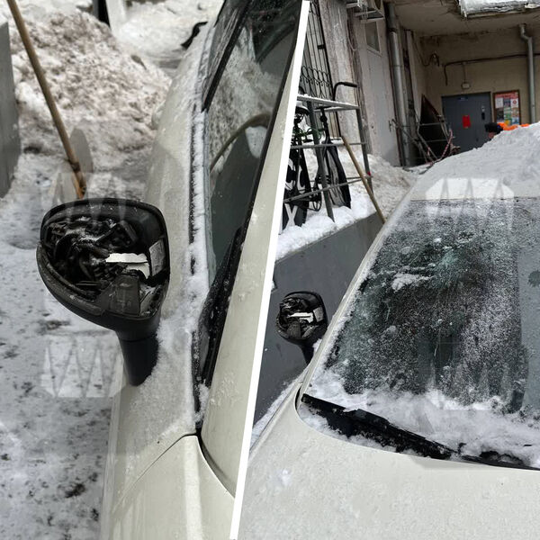 Судя по фото и видео, у одной из машин помята крыша, разбито лобовое стекло и правое зеркало. Владелец написал заявление на коммунальщиков с требованием возместить ущерб. Вместе с ним в полицию обратились соседи, чьи авто также пострадали от льда и снега.