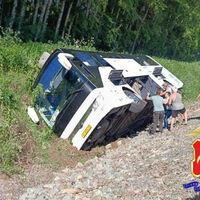 «Мы ехали по трассе, был хлопок, и автобус резко повело в правую сторону. Он повалил его на бок, все — автобус лежит на боку. Стекла разбиты, дети кричат, всех начали вытаскивать. Я вылез почти последний, самых труднодоступных людей помогал вытаскивать и детей. По поводу того, что он был пьян — информация вроде бы официальная и подтверждена. Но когда я подходил с ним общаться по поводу багажа, что я не буду свою сумку ставить в багаж, от него запаха перегара не было. Трое поехали в больницу города Топки. Сейчас водитель находится вместе со мной в больнице, в больнице находится еще женщина. И одна женщина уехала в травмпункт», — подчеркнул он.