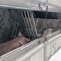 На кадрах, снятых очевидцем, видно, что свиньи сидят в перевернутой фуре. При этом некоторые из них покинули место аварии и ушли на обочину. На записи также слышно, что животные издают громкие звуки.