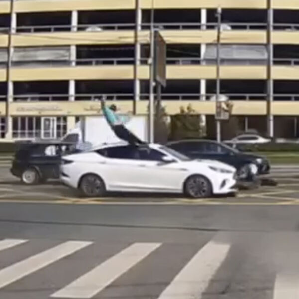 От удара курьер взлетел в воздух и упал на проезжую часть. О состоянии пострадавшего не сообщается.