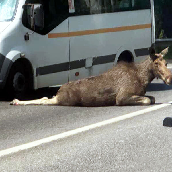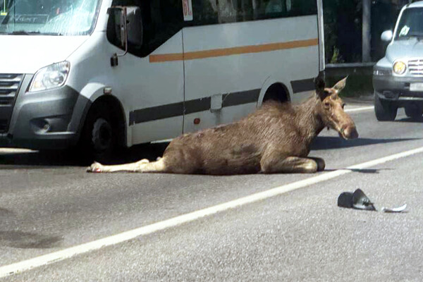 22 мая в Петербурге автомобиль сбил лосиху, которая шла с двумя малышами, и это попало на видео. На кадрах видно, как лось бежит по дороге, перепрыгивает дорожное ограждение, после чего его сбивает проезжающий автомобиль. От удара животное падает, но быстро встает и убегает. Далее на записи видно, как мужчина делает животному укол снотворного.