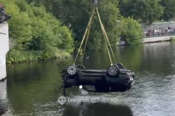Ранее на видео попало, как Lexus с тагильчанами пробил ограждение и вылетел в реку.