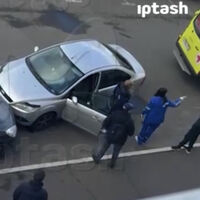 На опубликованных в сети кадрах видно, как медики стоят возле серого легковой автомобиля.