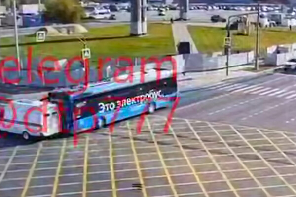 На опубликованных в сети кадрах видно, как автомобиль экстренных служб выезжает на перекресток на запрещающий сигнал светофора, где его сбивает электробус.