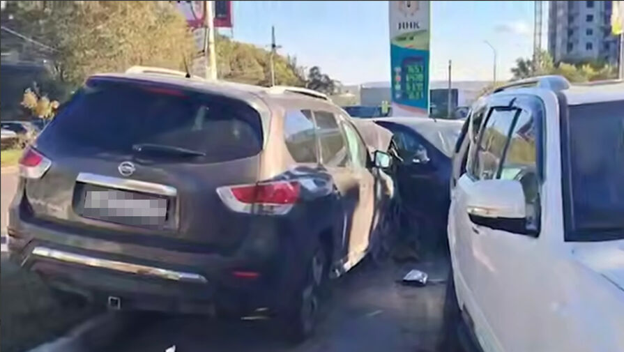 В Хабаровске водитель спровоцировал массовую аварию, пытаясь объехать голубя. Об этом сообщает Telegram-канал Amur Mash.