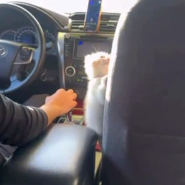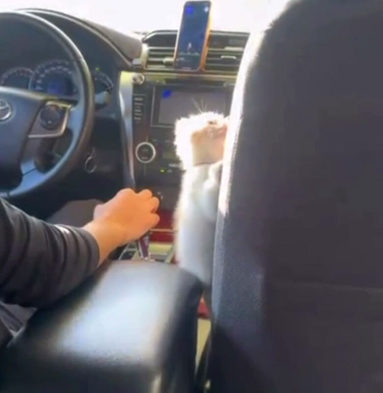 На опубликованных в сети кадрах видно, что во время поездки животное находится на переднем сиденье, при этом котенок пытается забраться на спинку.