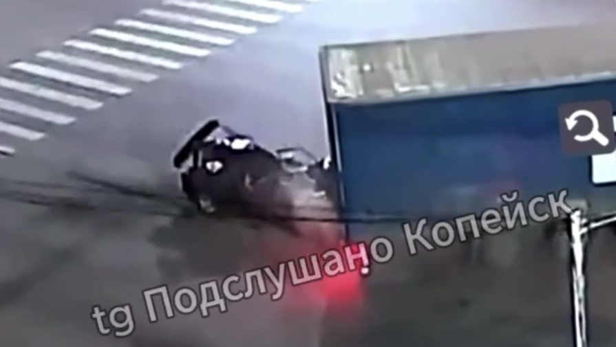 В Копейске Челябинской области автомобиль Lada врезался в поворачивающую фуру. Видеозапись инцидента опубликовал Telegram-канал «Подслушано Копейск».