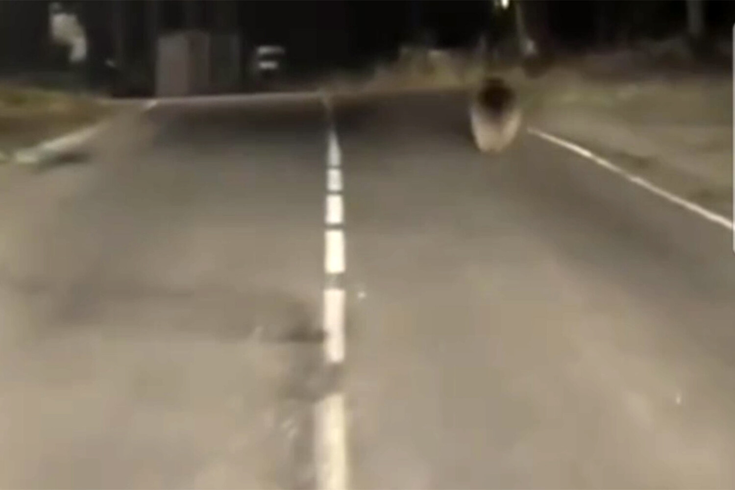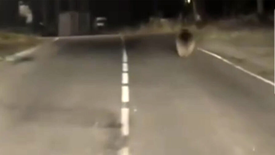 Челябинцы сняли на видео, как детеныш крупного хищника бежал по проезжей части