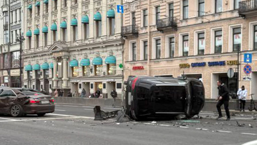В центре Петербурга водитель Audi устроил ДТП с переворотом и попал на видео