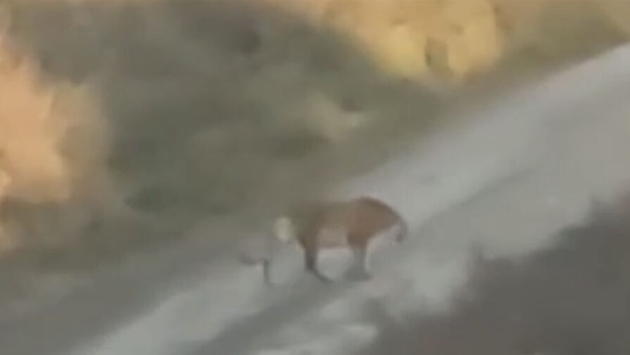 На опубликованных в сети кадрах видно, что тигр стоит на дороге.