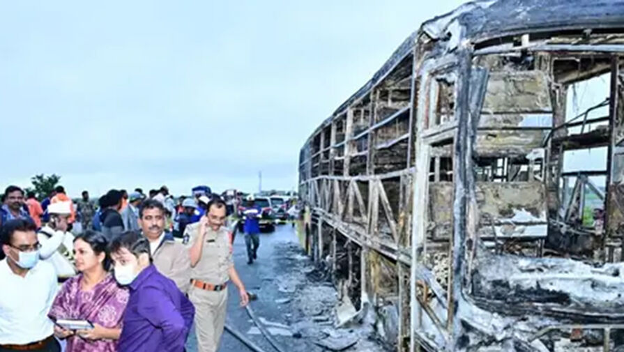 В Индии люди сгорели заживо в автобусе после ДТП. Об этом сообщает Hindustan Times.