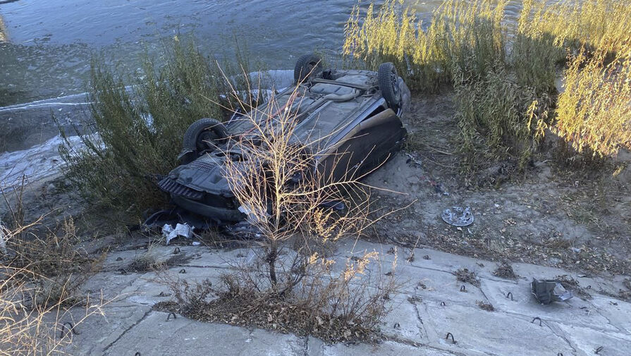 На кадрах с места происшествия видно, что автомобиль лежит на берегу реки рядом с отмосткой, укрепляющей опору моста. В непосредственной близости от опрокинутой машины виден поток воды.