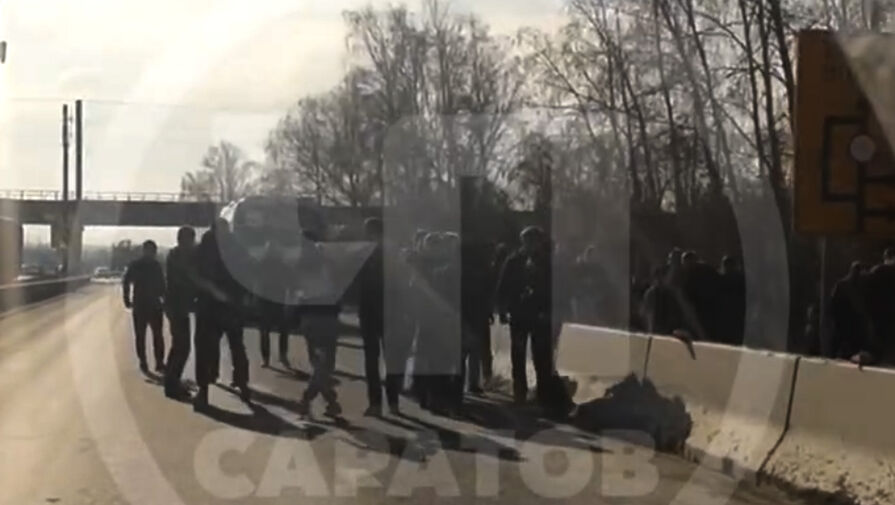 Футбольные фанаты заблокировали движение на въезде в Саратов, устроив драку на дороге