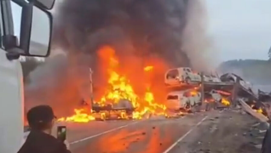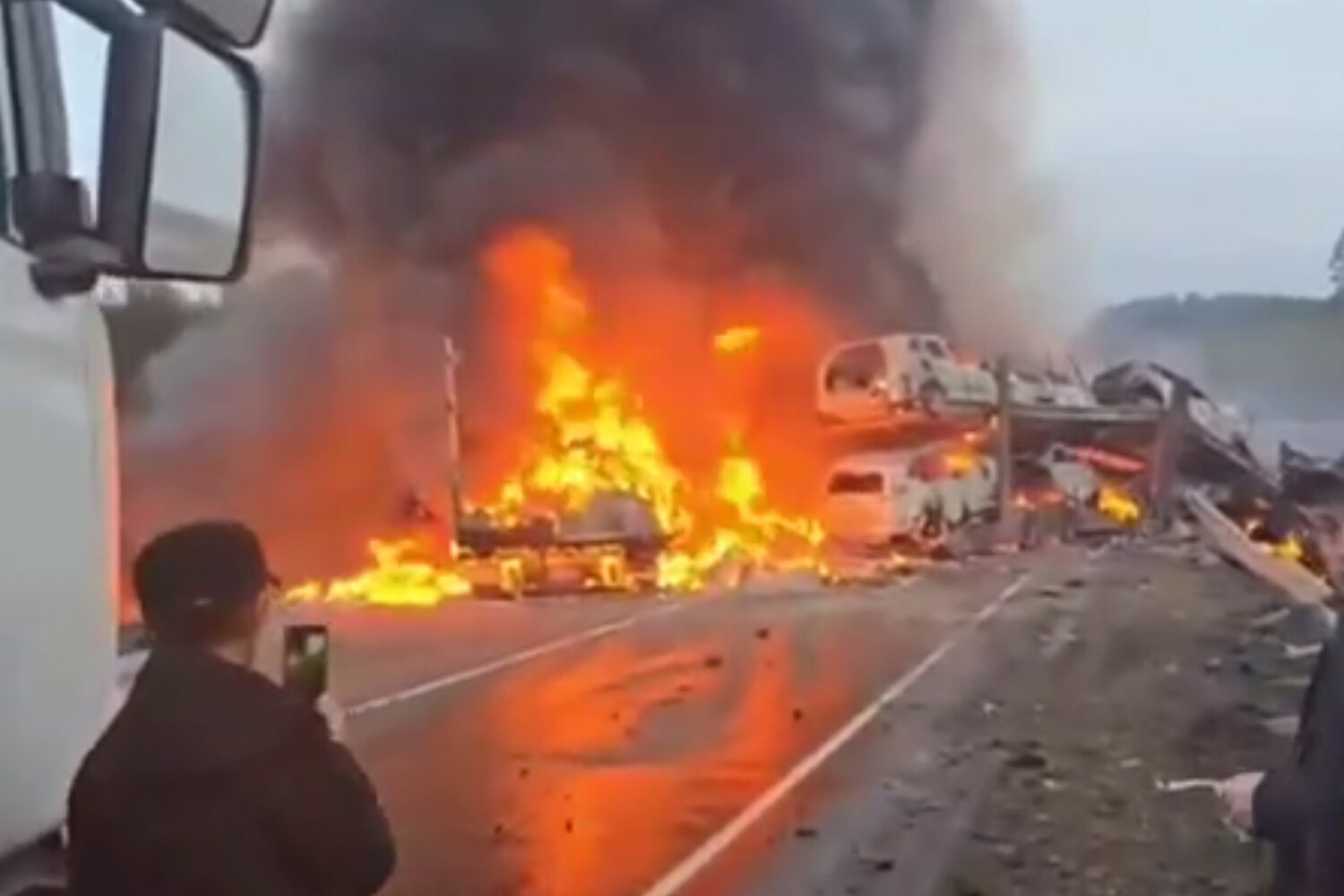 На опубликованных в сети кадрах видно, что пламя охватило машины полностью. По информации канала, в результате произошедшего водитель одного из грузовиков получил травмы, несовместимые с жизнью. На месте ДТП работали сотрудники экстренных служб. Кроме того, после аварии инспекторы ДПС ограничивали движение транспорта в обоих направлениях.