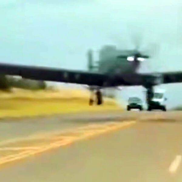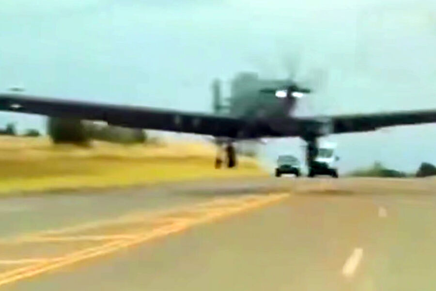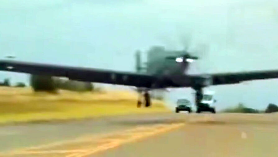 Видео: в США военный самолет приземлился на трассу и чуть не протаранил авто с человеком