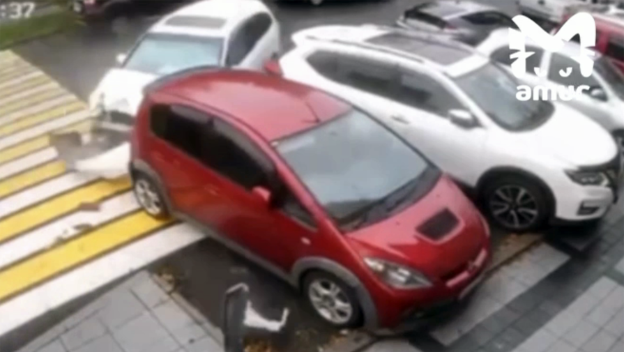 Во Владивостоке водительница на Honda влетела в автомобили на парковке. Об этом сообщает Telegram-канал Amur Mash.