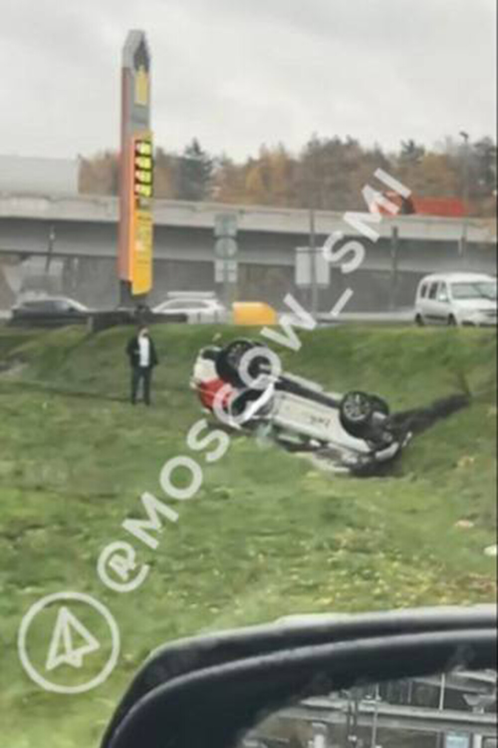 «Сегодня утром на 62-м съезде МКАДа произошло ДТП с каршеринговым автомобилем. Машина съехала в кювет», — говорится в публикации.