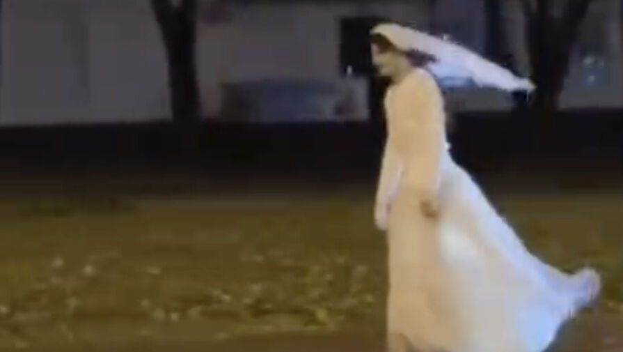 В Минске девушка в белом платье невесты и с фатой на голове каталась по городу на моноколесе. Об этом сообщает Telegram-канал «Мерзкий Кокобай».