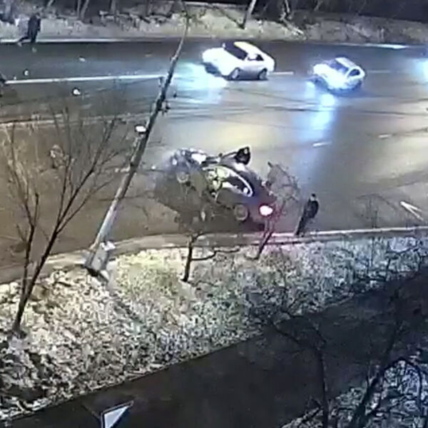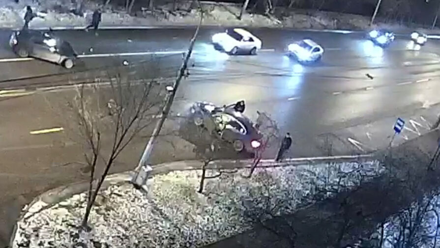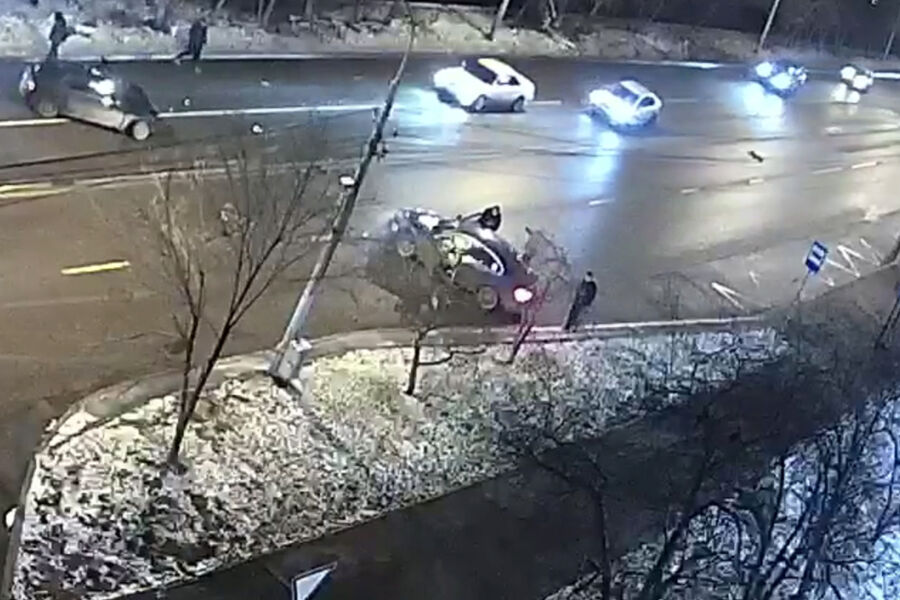 Уличная камера запечатлела инцидент. На кадрах видно, как легковой транспорт на большой скорости врезается в машину на повороте, от удара автомобили разлетаются и начинают вращаться. Кроме того, в момент столкновения отлетают детали. В конце записи заметно, что к поврежденным машинам подбегают очевидцы.