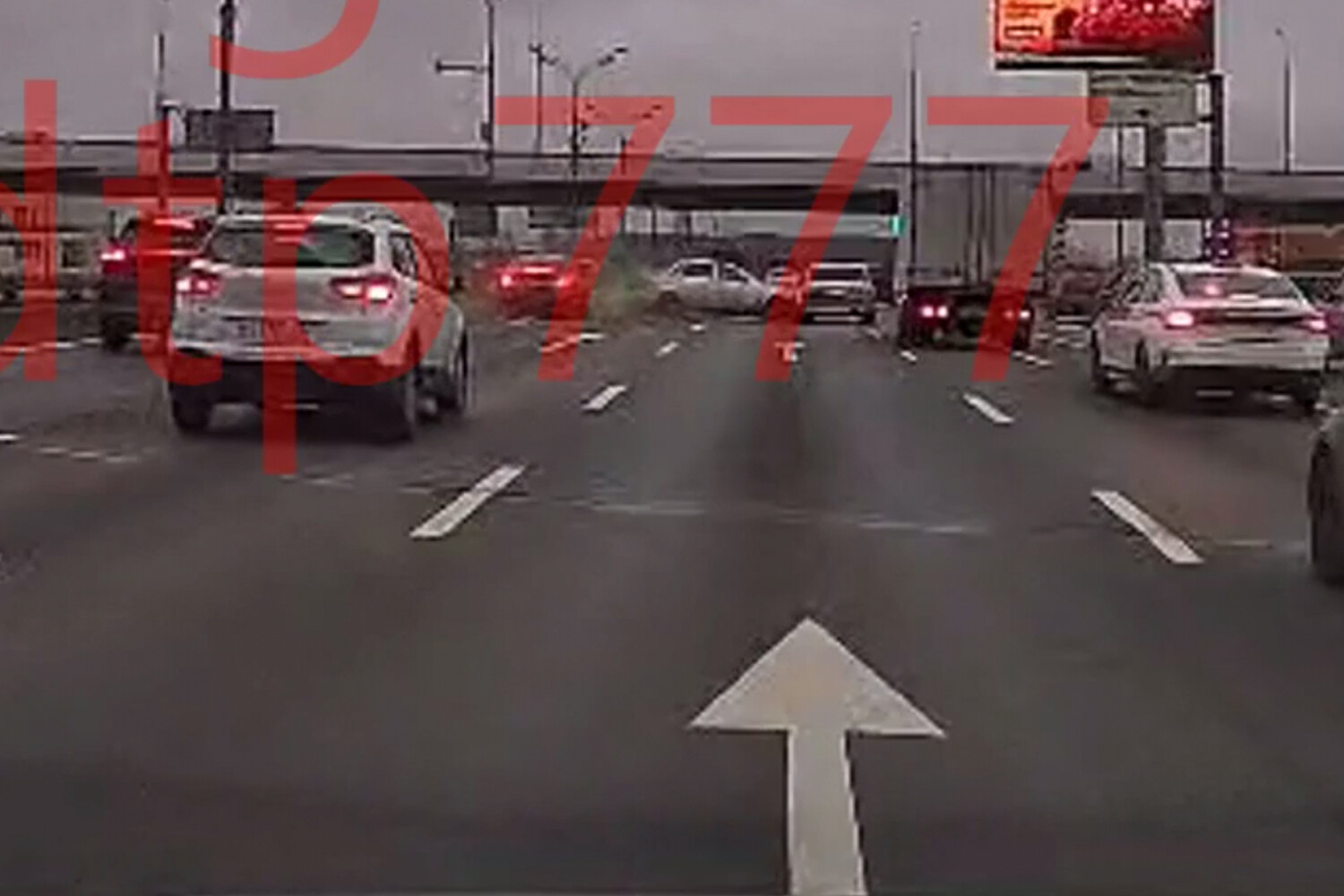 Видеорегистратор автомобиля, водитель которого стал очевидцем произошедшего, запечатлел инцидент. На кадрах видно, как водитель черного автомобиля увеличивает скорость и врезается в проезжающий транспорт, при этом вторая машина после удара задевает еще один автомобиль.
